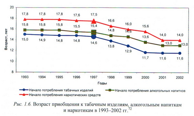 Například v Rusku podle statistik jedna pětina nápojů populace, a to je velmi vysoký ukazatel pro svět. Spotřeba (včetně v malých dávkách) je mužský alkohol 99,4 procento dospělé populace, respektive 97,9 žen procent. Současně se alkoholismus stává stále více „mladším“, od roku pije se rodiny s pitím a děti jsou uváděny jako relaxační nebo „dobré prášky na spaní“.