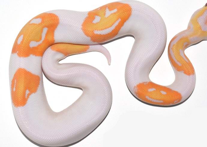 Někdy zvíře má rysy, které nejprve podívejte se na něj úplně k ničemu, ale vypadejte velmi legrační. Jeden z těchto tvorů se stal pythonem na bílém šupinatém jehož kůže vypadala jako vzor emotikonu – schématicky obličeje s očima a ústy.