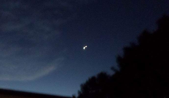 Američané cítili, že byli svědky vzhledu mimozemská loď. Manželka si pospíchala, aby získala mobilní telefon, fotit UFO. Podle jejích slov neidentifikovaný létající objekt byl relativně daleko proto jsem to musel zvýšit, což negativně ovlivnilo kvalita obrazu. Přesto je obrázek jasně viditelný záře, kterou nelze zaměnit s hvězdou, Číňané svítilna, letadlo nebo sonda počasí.