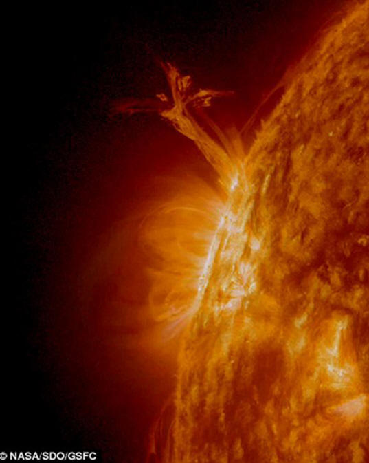 Podle astrofyzika Alexa Younga (C. Alexa Younga) z NASA (NASA) Goddardovo vesmírné letové středisko v Greenbeltu, Maryland), význam se ohnul kolem smyčky, rozdělil se na několik „vláken“ a vrátil se zpět na slunci. Emise dosáhla nadmořské výšky 150 tisíc kilometrů. Trvalo pár hodin.