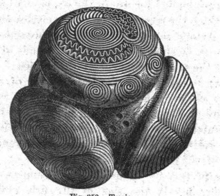 Foto z otevřených zdrojů Většina kamenů má stejný průměr – 70 milimetrů, s výjimkou několika větších, jejichž průměr dosahuje 114 milimetrů. Množství vyboulení na kamenech se pohybuje od 4 do 33 na povrchu některé mají spirálové a diskoidní vzorce. Neméně v Aberdeenshire byl nalezen zajímavý kámen, jeho průměr asi tři palce (asi osm centimetrů). Na to tři vyražené kulaté „čepice“ jsou vyřezány spirálové vzory podobné symbolům. Bylo to vytvořeno mezi 2500 a 1900 let před naším letopočtem. Geometrie předků pět kameny muzea Ashmol byly předtím v soukromé sbírce Britský archeolog, průkopník starověké minojské civilizace Sir John Evans, který věřil, že je lze použít jako náboje pro staré házení zbraní. Nicméně je to tak vysvětlení se nezdá pravdivé, protože na kamenech nejsou žádné kameny poškození, ke kterému by nutně došlo, kdyby byly použity během vojenských potyček. Ano, a samotný tvar kamenů, jejich složitost výroba naznačuje, že se snaží tak tvrdě, takže mušle, zbytečné.