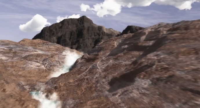 Létání nad touto záhadnou krásou na virtuální vrtulníkem můžete obdivovat marťanské kanály, skrze které Podle vědců, jakmile hlučné vody unikly, prořízly všechny tyto kanály v tvrdých skalách. Věnujte pozornost také kopcům s úžasně ploché vrcholy, majestátní horské vrcholy a neuvěřitelné vrásčité útesy, stejně jako fantastické chyby a krátery. To vše jsou stopy starověké tektoniky utváření a ničení povrchu Marsu.