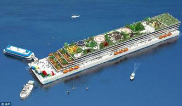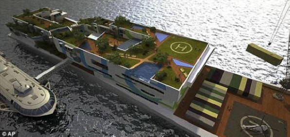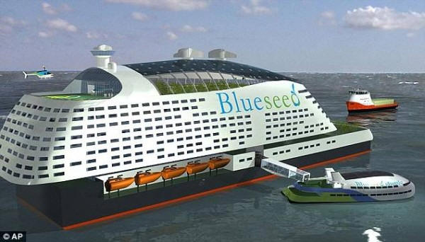 Blueseed je zakládání společností, podle kterých plánuje vytvořit plovoucí město 12 námořních mil od pobřeží Kalifornie Offshore city bude přeměněna na výletní loď nebo člun.