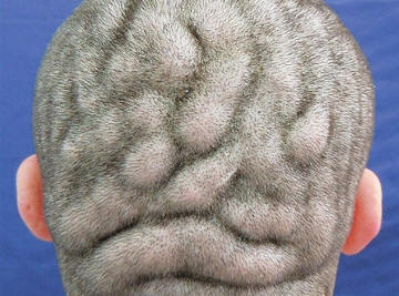 Nyní kůže jeho hlavy získala tvar mozku: v parietálním a hrubé bolestivé záhyby kůže vytvořené v týlní oblasti, připomínající mozkový gyrus. Mladý muž však není strach o jeho vadu, neskrývá hlavu pod kloboukem. On je dokonce pyšný na jeho neobvyklou lebku. Nejčastěji pachidémie se vyskytuje u mužů a obvykle se vyvíjí krátce poté puberta. Příčiny onemocnění jsou stále neznámé. Chcete-li zlepšit vzhled hlavy, můžete vytvořit řadu kosmetické operace. Je to však docela drahé. postup.