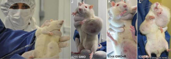 Dvě stě laboratorních potkanů bylo rozděleno do dvou skupin. Fed jeden geneticky modifikované jídlo, druhé – zdravé. O rok později u potkanů jíst geneticky modifikované jídlo, byly zjištěny odchylky a těžká patologie. Mnoho žen vyvinulo mléčný nádor žlázy, v některých případech dosahující 25% tělesné hmotnosti zvířete muži měli abnormality v játrech a ledvinách. To vše nemoci byly 2-5krát častější než u zvířat, která krmil zdravou stravu.