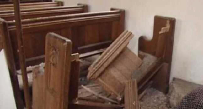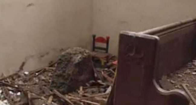 Dotyční obyvatelé zamířili do chrámu, kde jejich oči otevřel se šokující obrázek: obrovská mezera v krytu budovy díra a uvnitř fragmenty paprsků, lavic a církevní články.
