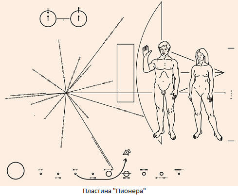 „Průkopníci“ V roce 1958 zahájily Spojené státy dlouhodobý vývoj vesmírný průzkumný program “Pioneer”. Už 20 let Vypuštěno 19 satelitů. Dva z nich, Pioneer 10 (2. března 1972) a “Pioneer 11” (5. dubna 1973) měl samostatný osud: po naplnění rozsáhlého vědeckého programu, do kterého museli odletět vzdálený prostor.