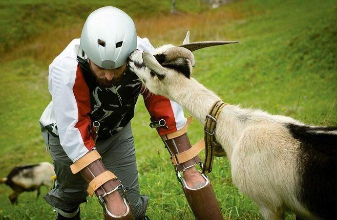 Třicet čtyři let starý Thomas Thwaites žijící v angličtině kapitál, provedl úžasný experiment. Londoner pro tři dny žily ve stádě koz v malé vesnici na švýcarském svahu Alpy. Zamýšlí se dostat nejvhodnější do role jednoho z rohatých zvířat vyrobila Twights speciální ruční trysky a nohy mu umožňují chodit po všech čtyřech.