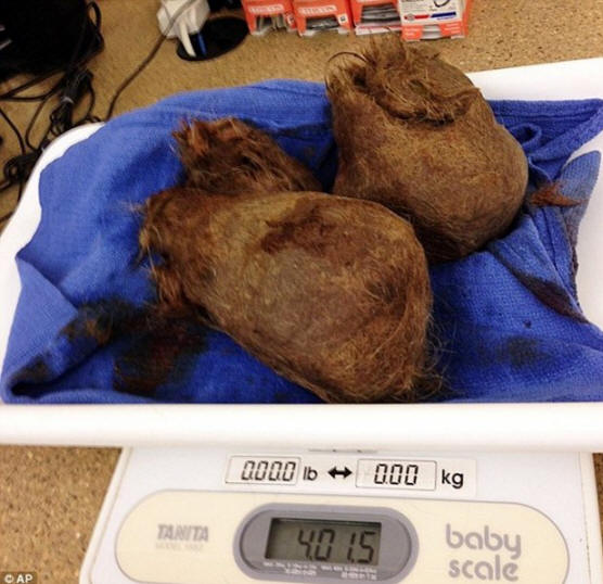 Fotografie z otevřených zdrojů Často se tvoří kočky v žaludku hrudky vlny, ale většina kočkovitých šelem úspěšně zvládnout tento problém sami. Nicméně Florida 182 kg tygr potřeboval pomoc veterináři. Pitva ukázala, že se v žaludku vytvořil tygr koule z vlny o velikosti basketbalu samotné zvíře se nemohlo zbavit.