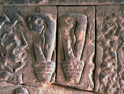 Tyto baňky nebo bubliny jsou velmi podobné obrovským elektrickým žárovkám s fantastickými kroutícími se hady uvnitř. Hadí hlavy korunované lotosové květy, poněkud připomínající držáky lamp. Něco podobně jako kabel připojený k krabici poblíž symbolem moci je „pilíř jed“, také spojený s hady.