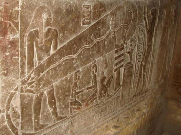Existují kritické důvody, protože obrázek je pouze doprovázen hieroglyfy nějakého náboženského hymnu zasvěceného bohu slunce – Ra. Toto umožnilo egyptologům upustit od všech neformálních hypotéz a sebevědomě vysvětlete piktogramy zobrazující tajemství chrámu nebeská loď boha slunce Ra. Podle víry Egypťanů, slunce každý den umírá večer a stoupá za úsvitu. Tady ho symbolizuje hada, který, jak se věřilo v zemi faraonů, znovuzrození, kdykoli se zbaví kůže.