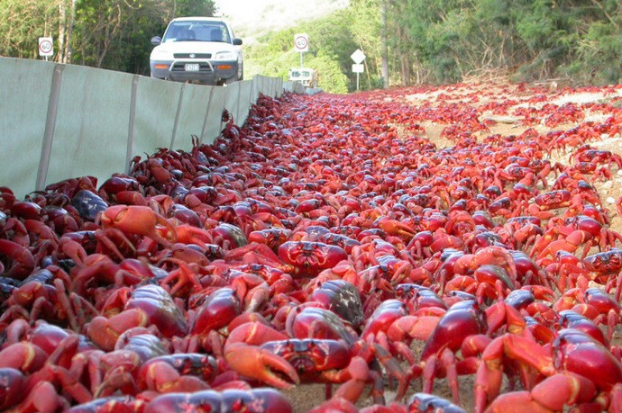 Podívejte se na tuto migraci červených krabů. A i když je pohled rovný báječné, ve skutečnosti takové migrace přinášejí spoustu problémů motoristé a silniční služby.