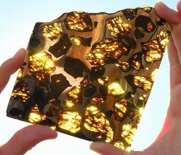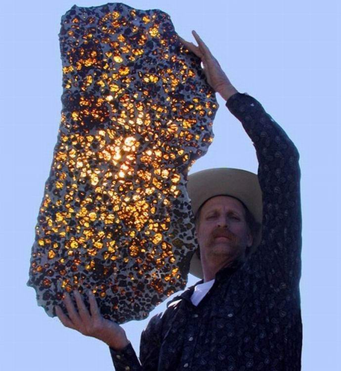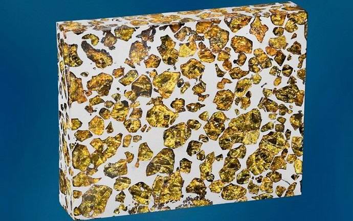 Meteorit, který má nápadný vzhled, je poloviční z olivinu a polovina z nikl-železné základny. Olivine také nazývá se chrysolit, je však vzácným kovem na naší planetě se vyskytuje ve formě nesrovnatelně menší velikosti krystaly.