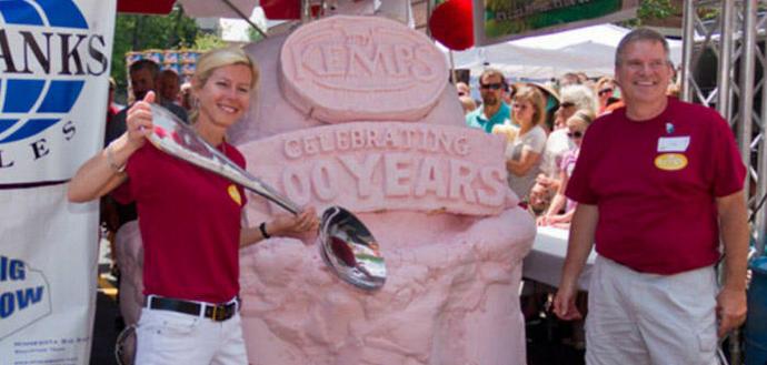 Světový rekord pro největší lžíci zmrzliny patří Kemps Diary a tady je největší kužel zmrzliny Američtí sochaři vytvořili 1345 kilogramů, specializující se především na tvorbu sochařských sborů.