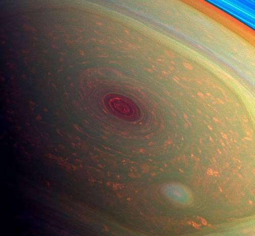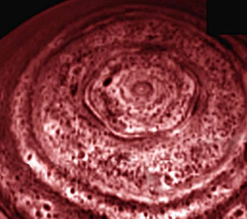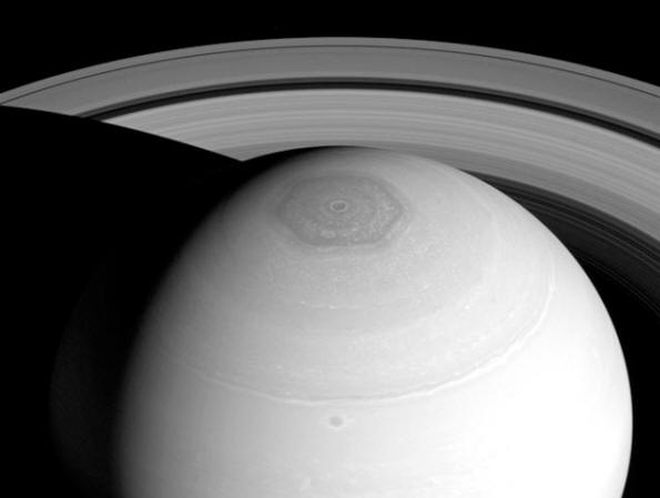Fotografie z otevřených Zdroje – Šestiúhelník je podobný zemským polárním vírům, ale zapnutý Z nějakého důvodu mají pro Saturn správný tvar. Je to velmi zvláštní tvar, má přesnou geometrickou strukturu a šest téměř stejných stran, “Kevin Baines vyjádřil překvapení, zástupce státní tryskové laboratoře v Pasadeně, stát Kalifornie