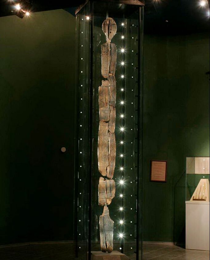 Fotografie z otevřených zdrojů Shigirsky idol, zdánlivě nevšední socha se sedmi osoby vyrobené z modřínu je jedním z nejcennější nálezy, jaké kdy byly na území objeveny Evropy. Vědci jsou přesvědčeni, že tajemná postava je stará nejméně 9 500 let, který přesahuje věk postavený na egyptských pyramidách Africká pevnina za vlády faraonů, téměř dva krát.