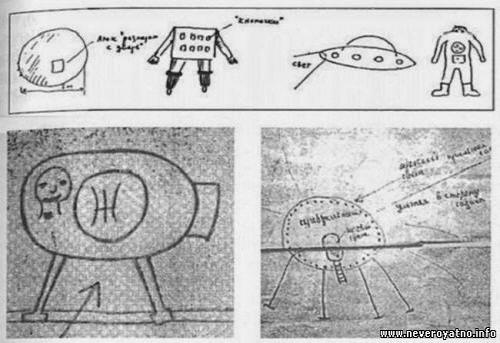 Fotografie z otevřených zdrojů Samozřejmě nemůžete věřit školce fantazie, ale policista také viděl UFO a nebyla to halucinace. Jsou videa, ve kterých děti a policista hovoří o této skutečnosti. Takže Vasya Surin, Zhenya Blinov a Julia Sholokhova, studenti místní škola, říkají, že viděli skvrnu tmavě červenou míč o průměru asi 10 metrů, který tiše klesl na země. Okamžitě se kolem objektu shromáždil dav. Pak dole V části objektu se otevřel poklop a z UFO vyšel tři humanoid stvoření oblečená ve stříbrných kostýmech. Byli až tři roky. metrů a každý měl tři oči.