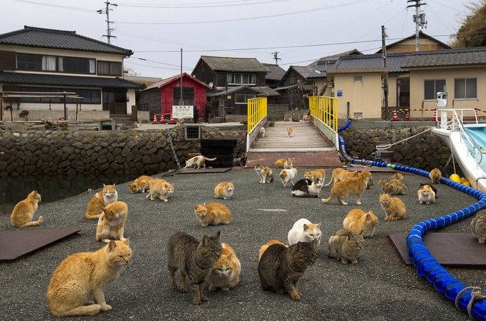 Na konci devatenáctého století však rybolov upadl. Brzy méně než tisíc původních obyvatel ostrova stovky. Dnes žijí své životy většinou lidé, nebo starší Japonci, znovu existuje kvůli rybolovu. Ne je překvapující, že se v roce 2010 stále více zvyšuje poměr lidí a koček na straně zvířat, zatímco je to asi jedna až šest až sedm.
