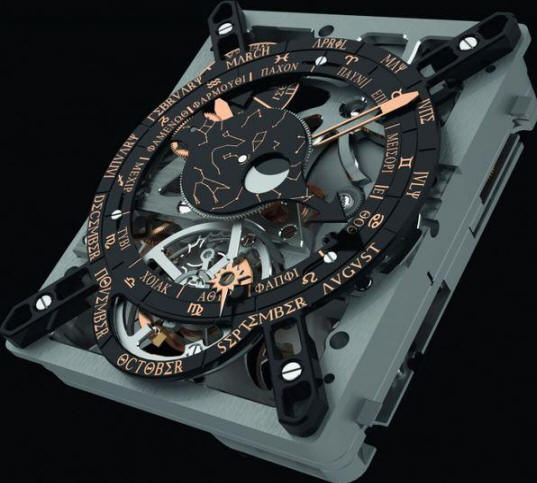 Fotografie z otevřených zdrojů DVA STRÁNKY ZAŘÍZENÍ Samotné zařízení měl oboustranné provedení: přední strana obsahovala jednu číselník, zpět – dva. Oba číselníky na zadní straně měly další malé ciferníky na středních kruzích. Všechny soustředné kroužky obklopující číselníky byly pohyblivé. Jsou poháněno otočným kolem vpravo boční stěna mechanismu. Přední číselník byl rozdělen na celý systém Egyptský kalendář po dobu 12 měsíců 365 dní. Bylo to je nainstalován pohyblivý prsten se symboly zvěrokruhu, který dovolil uživateli vyladit nástroj v přestupných letech. Tenhle Ciferník měl podle vědců tři ruce. Jeden označil datum, další dva – umístění slunce a měsíce. To je číselník byl jakýsi hvězdný kalendář (v řečtině – parapet), která označovala východ a západ slunce určité hvězdy. Vědci věří, že obrázky z mnoha Hvězdy byly vyryty po celém povrchu tohoto zařízení.