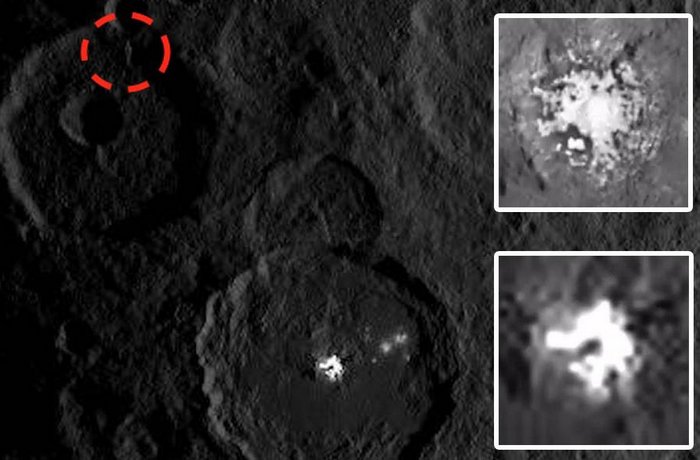 A zajímavé, ne příliš vysvětlitelné z hlediska ortodoxní věda, na této fotografii se to zjevně ukázalo hodně. Dokonce i ve zbývajících 35 procentech obrázku nebyl s výhradou manipulace, Scott Waring (navzdory nepřátelům a protivníkům NASA) našla obrovskou věž, vysokou asi 3000 metrů. Tato budova se nachází v blízkosti kráteru, kde slavná bílá skvrna Ceres také, jak se říká, již dlouho způsobuje heterogenní ve vědeckých kruzích.