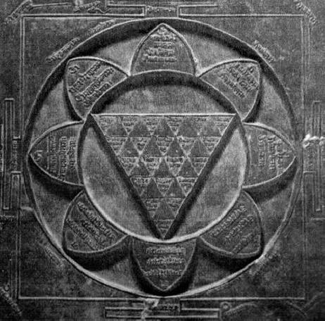 Například i nejčasnější indické yantry určené pro meditace a poznání vesmíru obsahují pouze prázdné trojúhelníky příležitostně – v některých případech textové mantry (viz obr., v tomto případě) je jich 36). V takovém systému nejsou žádné asistenční obrazy, ale Složení informací vysílaných meditátorem je diktováno sám umístění trojúhelníku mezi ostatními.