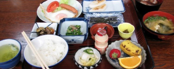 Japonská snídaně by měla být rozdělena na tradiční (miso polévka, rýže, řasy nori) a západní (káva, vejce, toast s máslem, brambory salát).