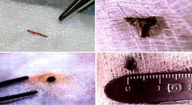Bylo to jako „matice s pravidelnými čtvercovými buňkami, obsahující inkluze ve formě binárního kódu. “Pseudovědecký veřejnost a poté všudypřítomný tisk pokřtil tyto předměty “implantáty” (lat. “implantované do těla”). Proto souhlasíme s tím, že budeme nazývat určité předměty nebiologické původ vložený do živé lidské tkáně neznámým způsobem a s neznámými účely. Nicméně na začátku našeho malého Články se zabývají případy pouhého projevu kovů v těle Homo Sapiens. Kovové fragmenty se objevují samozřejmě v lidská těla v důsledku zranění na bojišti, domácí a průmyslová zranění, chirurgické operace atd. zde nebudou považovány za triviální, i když ve výše uvedeném V těchto případech se projevují velmi zajímavé a záhadné jevy. Paul Bragg, autor uznávané práce “Půst”, popisuje incident, který se mu stal. Nemohu ručit za přesnost nabídky, ale průběh událostí je popsán naprosto správně. „Bylo to čtrnáctý den roční měsíční půstní období. Odplul jsem lodí běh malého potůčku. Najednou, ostrý silná bolest doprovázená křečemi. S obtížemi jsem se dostal ven břeh, a tady asi polovina šálku rtuti ze mě přirozeně vyšla. Byl jsem ohromen, ale později jsem si to v dětství připomněl plněné lékem “Calomel”, protože jsem trpěl chronicky nachlazení a tento lék byl vyroben na rtuti “Ale případ je velmi nedávný a mnohem tajemnější.” 53letý elektrikář z Nikolaevska na Amuru Pavel Popkov se otočil okresní klinika o hlenu na levém rameni. Co je to? Když se chirurg otevíral, došlo k překvapení a určitému zmatení chirurga v zanícené oblasti našel jedovatě zářící se v ráně rtuť. Fluoroskopie provedená později nalezena u pacienta, jehož biochemické analýzy byly naprosto normální, přítomnost obrovského množství rtuti v těle. Na elektrikáře „jiskřil“ jedovatý kov všude kromě lebky. Rtuť nalezená v oběhu systém a lymfatické uzliny. Mimochodem se Popkov začal zajímat milice – Paul dříve pracoval na těžbě zlata podnik, a tam, jak víte, se používá k rafinaci (získání zlata) je přesně rtuť. Později se to stalo známým několik měsíců před událostmi popsanými u rtuťového flegmonu k doktorům přišel osmnáctiletý muž – tak těžba zlata neměla nic společného, jen lékaři ve druhém případě Ukázalo se, že je více pozorný, zvědavý a profesionálnější. A tady zcela odlišná třída detekovatelná v živých lidských tkáních položky poskytují mnohem více místa pro reflexe a vzbuzuje zřejmé obavy jejich výzkumníků. Jak už to bylo všiml dříve, od konce 80. let stále více a více zpráv o extrakce svalové a kostní tkáně z bolesti nepochopitelného původu pro lékaře pacientů, zvláštní položek. Jejich lineární rozměry se lišily od zlomků milimetru. na jednotky centimetrů. Položky byly umístěny do nejvíce nečekaných části těla – nohy, břišní stěna, nosní přepážka atd dále. Znepokojeni rostoucími zprávami o zvláštních službách Spojené státy (FBI, NSA a především CIA) jsou úzce zapojeny daný problém. Americká inteligence se dokonce objevila specialista na plný úvazek – Dr. Roger Lear. Mimochodem, téměř první příběh o odstranění kovového implantátu Dr. Learem nohy pacienta obcházely stránky novin a časopisů a je pravděpodobně jedním z mála povolených ke zveřejnění. Zbytek, jako obvykle, je zakryt v závoji tajemství a uzavřen bezpečně informace s děsivým razítkem “Top Secret”, jako v jedné z prvních epizod X-Files, skrytých v tajném podzemí skladovací zařízení. Podívejme se stručně na tento případ mít představu o tom, co představuje implantovat. Od poloviny 90. let ke zkoušce na Dr. Lira CIA poslal více než dvě stě lidí. Každý z nich souhlasil extrakce cizích předmětů z jejich měkkých nebo kostních tkání. Jedna z prvních získaných položek byla dlouhá jako písmeno „T“ asi centimetr. Byl zasazen do kosti zdravé ženské nohy a potažená tmavou membránou organického původu, která není přístupná řezání ostrým lékařským skalpelem. Navíc membrána podivně se spojil se železným jádrem implantátu a kosti chodidel. Samotný subjekt byl pokryt mikroskopickými procesy, implantované do kostí, chrupavek a dokonce nervových zakončení. Látky kolem implantát měl neobvyklou strukturu, byly přemístěny a jako by “jinak smontovaný.” Stejné případy byly zaznamenány v Rusku. Na začátku 2000 na Petrohradském výzkumném ústavu urgentní medicíny. I.I. Janelidze u třicetiletého pacienta s počítačovým vyšetřením odborníci našli tmavé místo na obrazovce monitoru. V podrobné zkoumání místa se náhle změnilo v komplex geometrický tvar sestávající z několika obdélníků. Cizí těleso měřící méně než pět milimetrů bylo jasně umělý původ a jasně vystupoval na pozadí více světlé mozkové buňky. Neidentifikuje patologický stav pacienta změny, odborníci přisuzovali skutečnost přítomnosti v lebce cizince podléhají kategorii nedorozumění, která jsou „irelevantní“. Dobře a teď nejzajímavější – co to je, kde a proč? Existovat několik hypotéz o výskytu cizích formací v živé tkáni. Jako vždy, vyděšený měšťanský hřích za machinace zvláštních služeb. Jako, mocenské struktury, které vštípí moc těch, kteří jsou u moci, zažívají a implementovat nejnovější systém řízení pohybu a co je horší, myšlenky a chování netušícího obyvatelstva. Tohle verze nevydrží kritiku, protože technická a biologická úroveň extrahovaných implantátů je daleko dopředu současné pozemské schopnosti spojit živé a neživé hmoty. Druhá verze je uvěřitelnější. Mnoho držáků implantátů připo