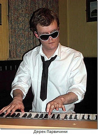 Daniel je však zcela bezmocný. Nerozlišuje „vpravo“ a „vlevo“, nelze provést nákup v obchodě a ne Můžete se naučit používat spínač v koupelně. V žádném případě není moron, dobře si vědom své “exkluzivity”, ale bez potíže s voláním čísla „pi“ s přesností na 22,514 číslic čárka, neschopná ovládat nejjednodušší dovednosti potřebné pro skutečný život. Slepý hudebník Derek Parvichini Je nazýván největší jazzový hudebník naší doby. Ve 4 začal dělat hudbu, a v 9 vystoupil v londýnské Barbic Hall v Londýně za doprovodu Královské filharmonie. Pro mnoho světoví hudebníci pořádají takový koncert a zůstává jen sen.