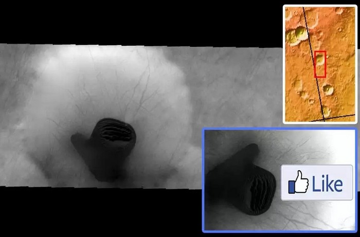Ufolog, virtuální archeolog a jen výzkumník všeho druhu paranormální, které vás a mne obklopuje, Scott Waring nadále ohromuje a potěší uživatele internetu jejich najde. Tentokrát našel na obrázku zaslaném s orbiter “Mars-Odyssey”, populární znamení sociální sítě jako Facebook – jako, což znamená, že se mi líbí nebo “to je skvělé.”