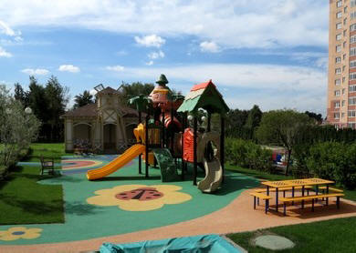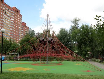Hřiště (nikdy jsem neviděl takový „horolezecký rám“) děti “).