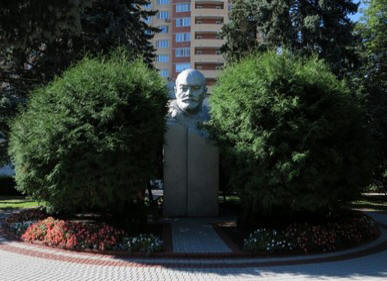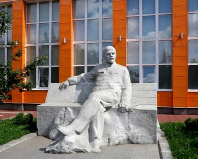 Ve vesnici jsou samozřejmě sochy Vladimíra Iljiče.