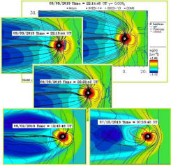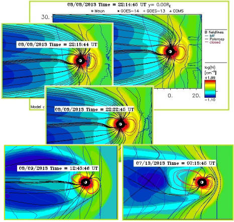 Další sledování zaznamenalo také zajímavá data. Zemské magnetické pole – BATSRUS. V datech k 8. 8. 2013 na na obrázku můžete pozorovat nápadné nepravidelnosti meziplanetární magnetické pole ve směru Slunce (modré čáry). http://ccmc.gsfc.nasa.gov/cgi-bin/SWMF_RealTime_browse.cgi http://iswa.ccmc.gsfc.nasa.gov:8080/IswaSystemWebApp/ http://www.solarmonitor.org/region.php?date=20130808®ion=11810http://www.swpc.noaa.gov/rt_plots/kp_3d.html)