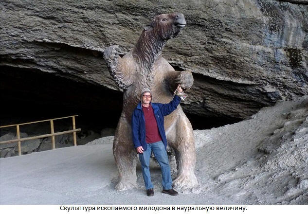 Foto z otevřených zdrojů Stejná kůže pokrytá kostními uzlinami, dlouhé obrácené drápy, zanechávající velmi podivné tisky. Zapnuto břicho milodonů mělo žlázy, které vydávaly nepříjemný zápach (zjevně prostředek obrany proti nepřátelům). Tyto žlázy jsou docela Indové mohl být zaměněn za „ústa na břiše“.