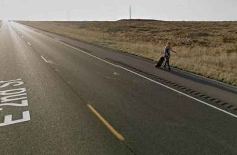 Druhý den tito neúnavní hledači narazili na fotografii osaměle putující žena s kufrem v ruce po opuštěné dálnici USA. S na první pohled by se mohlo zdát, že na tom není nic zvláštního, tím více je obraz již nakreslen: nyní žena vzroste ruku a zastavte projíždějící auto.