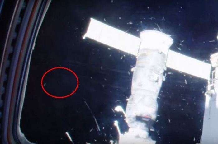 Nicméně na veřejném displeji záběry ze skladu, ufologové Brent a Blake, známější pod názvem “bratranci” objevili létající UFO, které se objeví z pravoboku strany stanice, pak se ponoří pod trupem Sojuzu MS-02, připojený k ISS, mění úhel letu a pokračuje svou cestu, rychle překračující viditelnost.