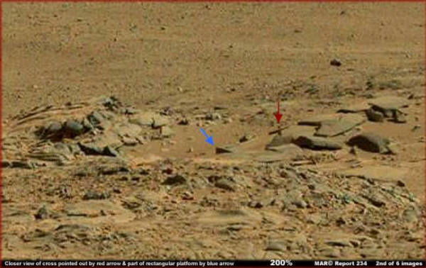 Kříž není v žádném případě tvořen vzorem – je to jasně trčí. A přítomnost blízkého talíře naznačuje, že „Zvědavost“, možná dosáhli místního hřbitova. Ale kdo je zde pohřben? Nepravděpodobné zda je to domorodý Marťan. Konec konců, podle vědců, život dál Rudá planeta, pokud ano, zemřela před miliardami let. Od nic materiálu nebylo možné zachovat. Ukázalo se, že Mars někdo byl na návštěvě. Není to tak dávno a velmi aktivní.