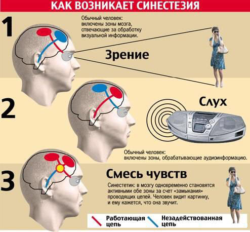 Michael Banissi z Goldsmith College (UK) a jeho kolegové upozornili na skutečnost, že v průměru sto jeden nebo dva lidé, kteří jsou alespoň jednou za život (obvykle v roce 2006) dětství) zažilo to, co se nazývá zrcadlový hmat (zrcadlový dotyk) synestézie. Současně, nejsilnější pocity to způsobilo bolest. “Nesnáším, když můj manžel vypadá krutě.” filmy, “připustil jeden z účastníků průzkumu subjekt požádal experimentátora, aby se ho nedotkl skla s ledem. Je pro vás těžké si představit, jaké to je, když je vaše prsty, ruce cítí, co cítí odpovídající části těla osoba, kterou pozorujete? A synesthetes prostě nemohou představte si, jak “normální” lidé žijí. Na jedné straně jsou rád se dívám na lidi, kteří se objímají a líbají, ale někdy zkušenosti ostatních lidí je přemohly. „Musím neustále připomenout si, že to nejsou moje pocity, “stěžuje si jeden z synaesthetes.
