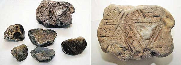 Foto z otevřených zdrojů Nalezené v blízkosti místa havárie Tunguska meteoritové “křemenné desky mají na svém povrchu kresby. Vědec věří, že na Zemi stále neexistuje technologie použití takových vzorů na krystaly. Také nalezeno křemičitanové železo, jehož rodištěm může být pouze prostor, řekl Jurij Labvin.