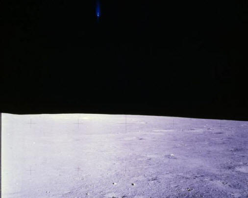 Tento záhadný modrý světelný objekt visící v atmosféře nad povrchem měsíce, vědci objevili fotografie pořízené Apollem 14. Pokud si vzpomínáte na příběh některé světelné koule viděné astronautem Buzzem (Edwin) Aldrine, je možné, že na obrázku něco skutečně mělo místo, kde se nachází na Měsíci, není překážkou při fotografování.