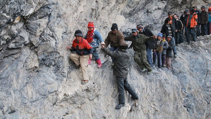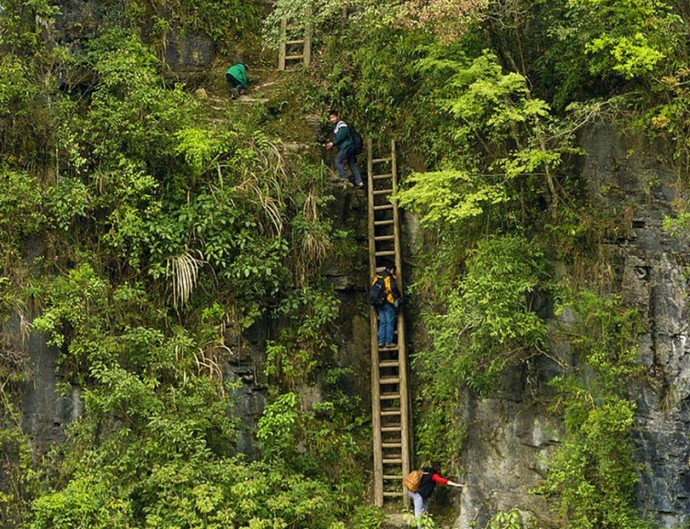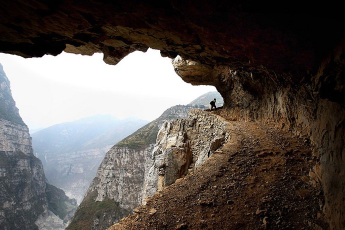 Například v čínské provincii S’-čchuan je malá vesnice Gulu, jehož děti musí překonat obrovský vzdálenost do školy. Usnadnit to test pro děti, dospělí si udělali svou vlastní cestu tunelem tím se zkracuje cesta. Samotná stezka se však v tomto případě táhne přes sráz a na některých místech nepřesahuje šedesát centimetry. Vesničtí chlapci a dívky musí překonat tuto nebezpečnou cestu jednou týdně, od školy pracuje na principu internátní školy, tj. poskytováním přenocování a poskytování jídla.