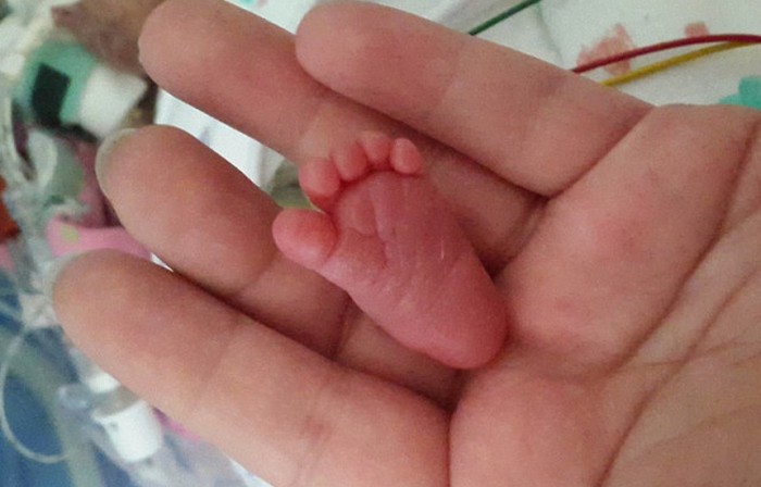 Stačí se podívat na nohy tohoto malého dítěte (foto níže), abyste pochopili, jak je malý. Téměř nic lékaři ani nečekali, že Emilia přežije, ale lékaři šli do takového kroku (umělé ukončení těhotenství a extrakce pomocí císařského řezu), protože se vyskytl problém placenta, stejně jako výživa plodu. To byla jediná šance a Rodiče dívky souhlasili s použitím. Těhotenství Emilia byla přerušena ve dvacátém šestém týdnu.