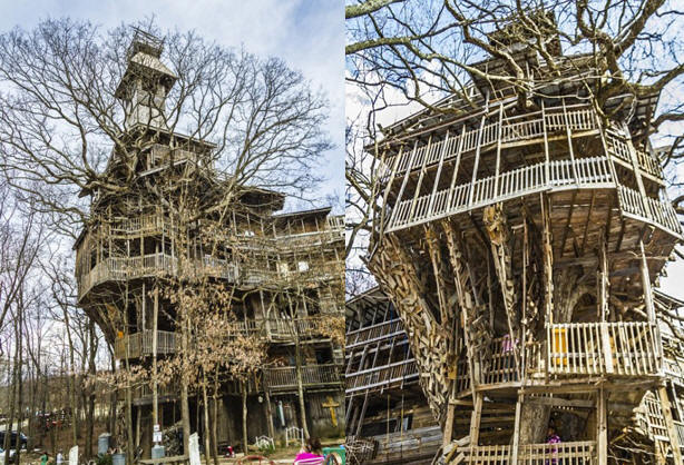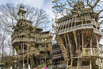 Fotografie z otevřených zdrojů mi bylo řečeno, že struktura podporováno šesti stromy, které jsou uvnitř a dále stavba zabrala 258 000 hřebíků. Tento dům je snem všech dětí. Když ho uvidíte, chcete okamžitě vstoupit a prozkoumat ho spolu a napříč.