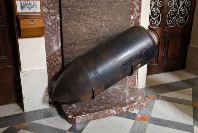 Žádná ze tří bomb však nevybuchla. Dva obvykle odletěli od kupole a pohřbená v zemi kousek od katedrály a třetí stále prorazil střechu kostela a padl na nohy farníků a děsil je k smrti, ale nikomu neubližuje.