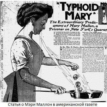 Příběh Mary Mallonové, imigrantky z Irska, začíná v roce 1900 rok se ve státě New York objevila třicetiletá žena. Dobře milující, úžasný kuchař – recenze o ní byly vždy ty největší nejlepší. Mnoho bohatých rodin ji šťastně najalo jako služebník. Ale s Mary, tyfus přišel do rodiny. První reportéři našli její stopu v Mamaronek, kde poté Maryův dvoutýdenní pobyt v roce 1900 způsobil epidemii tyfu. V roce 1901 se Mary objevila v New Yorku a rodina se ujala pracovat mladá irská žena, objevili se pacienti s horečkou a průjmem. Změnila zaměstnání a v nové rodině hned 6 lidí onemocnělo abdominálními příznaky tyfus.