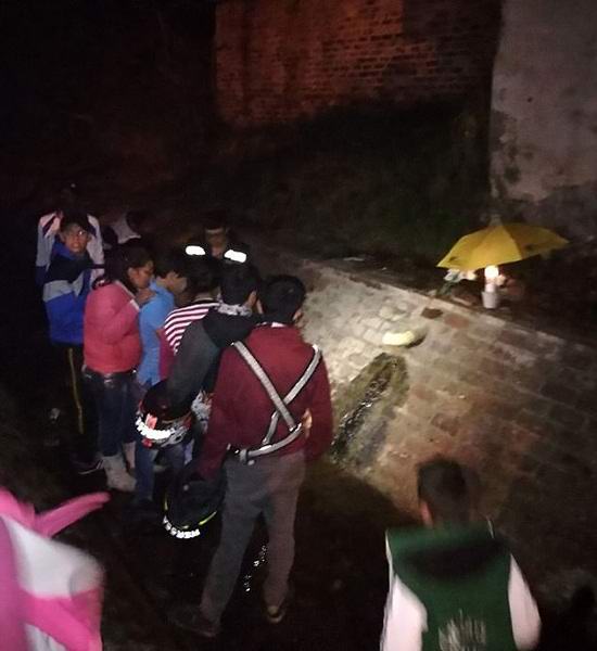 První anomálii si všiml malý chlapec, který přecházel mostu a zaslechl zvláštní zvuk, jako by se do vody rozstříklo něco živého. Překvapené dítě sestoupilo do kanálu a vidělo to na cihle zdivo pod trubkou, ze kterého pomalu tekla voda, se vynořilo silueta Panny Marie. Mladý Kolumbijec se přiblížil, vytáhl jeho mobilním telefonem a vyfotili zeď. Určitě na okamžik se mu náhle zdálo, že se obraz pohnul. Chlapče vyděšený, spadl na kolena a začal se modlit. Pak utekl domov, aby rodině řekl, co se stalo.