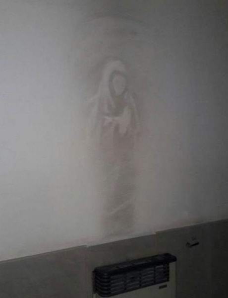 V tajemné kresbě, která se zde objevila sama o sobě, jasně viditelná je postava ženy se zahaleným závojem nad hlavou dlaně dohromady. Ano, přímo pod tímto místem je topení, neustále fouká na zeď, ale jaké jsou šance, že zrychlil Zlomí se zařízení do takového obrázku? Pracovníci nemocnice a pacienti jsou přesvědčeni, že podobnost je nadpřirozené a mluvíme o skutečném náboženském zázraku. Tady jak řekl Commodore Peralta novinářům hlavní lékař:
