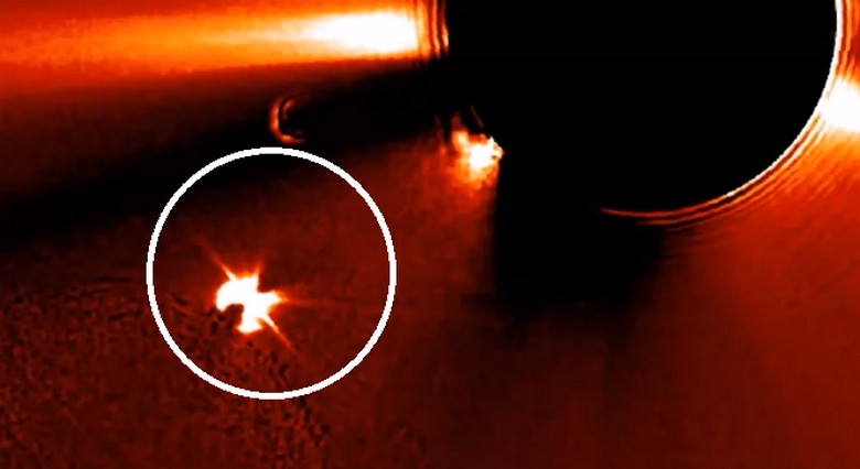… A další den byl cizí loď spatřen vesmírnými satelity SDO a SOHO, přinejmenším oni přenášené na snímky Země, což to potvrzuje. Tentokrát jednoduché obří UFO přibližně stokrát větší než naše planeta, vyletěla ze Slunce – přímo z ohnivého magmatu. A nic …