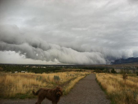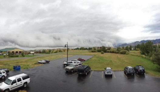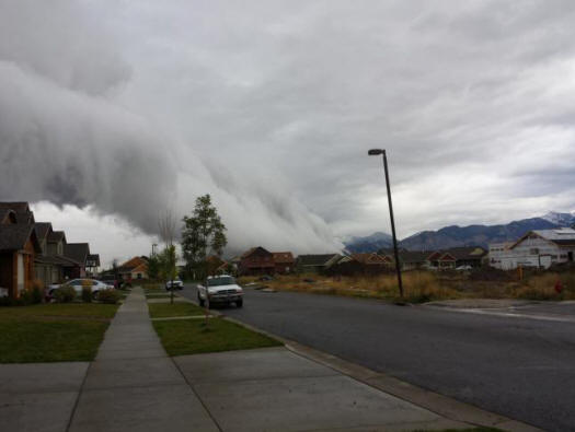 30. září brzy ráno byli obyvatelé Bozemanu v Montaně vyděšený nízkými mraky, blížícími se k městu, chůze u zdi doma. Specialisté z National Weather Service uspěli rychle identifikovat tento jev jako police police, ale říkali, že se tyto mraky pohybovaly příliš blízko k zemi. – To je “Vypadalo to velmi zlověstně,” řekl meteorolog Nick Langlib, “protože.” že byli přes 600 metrů vysoké. Obvykle při silných bouřkách se objevují oblaky polic a obvykle jsou připojeny do nadřazeného cloudu, který je umístěn přímo nad nimi. Brzy po objevení mraků nad státními městy prošla bouřka sprchy, blesky a silné poryvy větru. Přinesl měsíčně srážky a udělal tento září nejdeštivější pro daný terén od roku 1983.
