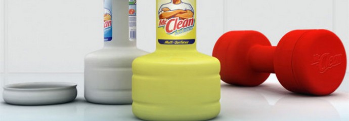 Balení čistícího činky. Teď ženy v domácnosti si budou moci budovat svaly, nejen utírat kuchyň desky.