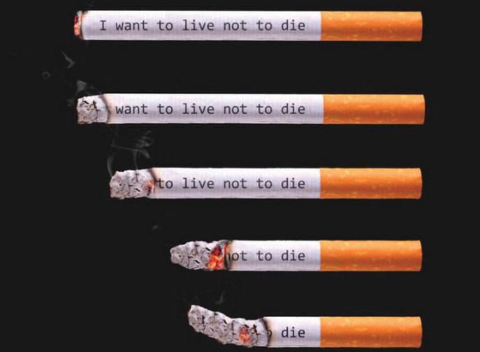 Cigarety, které, jak jsou kouřeny, mění nápis „Chci žít, ne umřít,“ zkrátka – „zemřít.“ To by stálo za to všechno cigarety poskytují něco podobného …